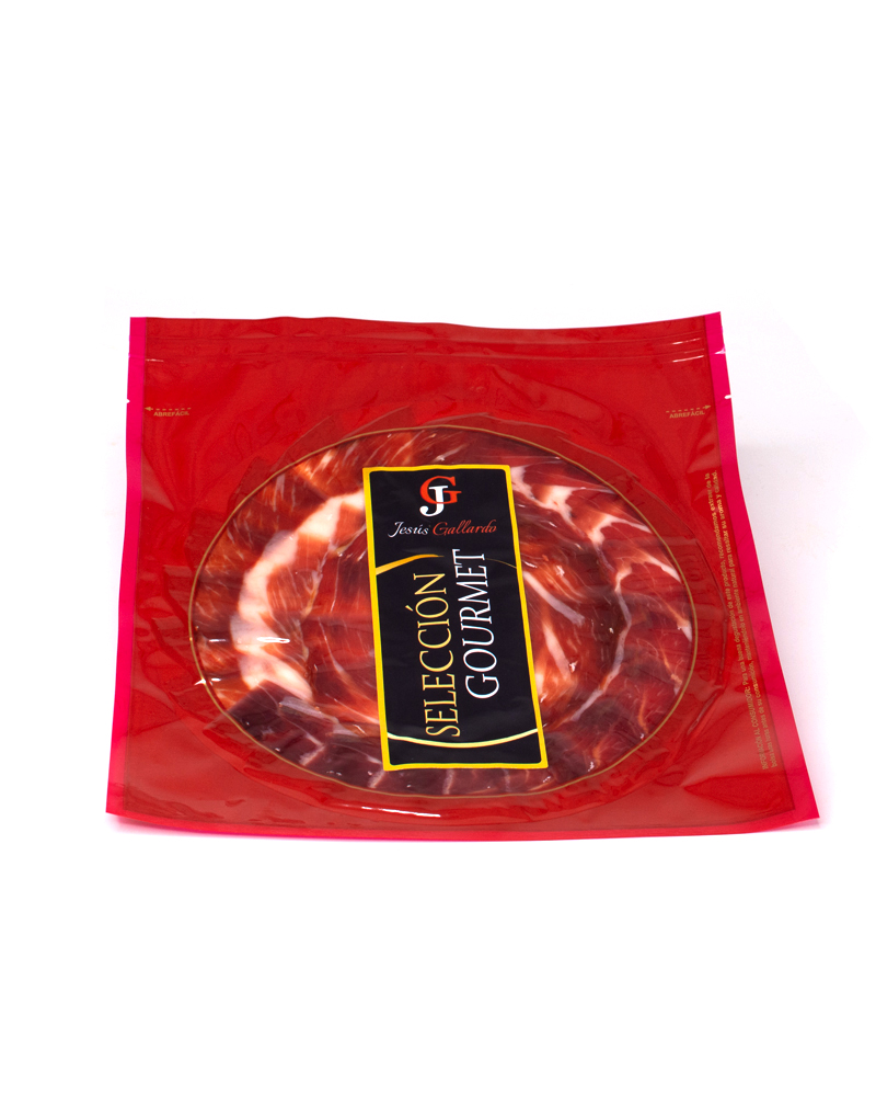 Disfruta del auténtico sabor ibérico con nuestro jamón de bellota 50% ibérico loncheado. Procedente de cerdos criados en libertad en dehesas y alimentados con bellotas durante la montanera, este jamón combina tradición, calidad y un sabor inconfundible. Cada sobre de 100 gramos contiene finas lonchas cortadas para preservar su aroma, jugosidad y textura delicada. Ideal para degustar en cualquier momento, como aperitivo o en tus platos más especiales. Un bocado de pura esencia ibérica, listo para disfrutar.
