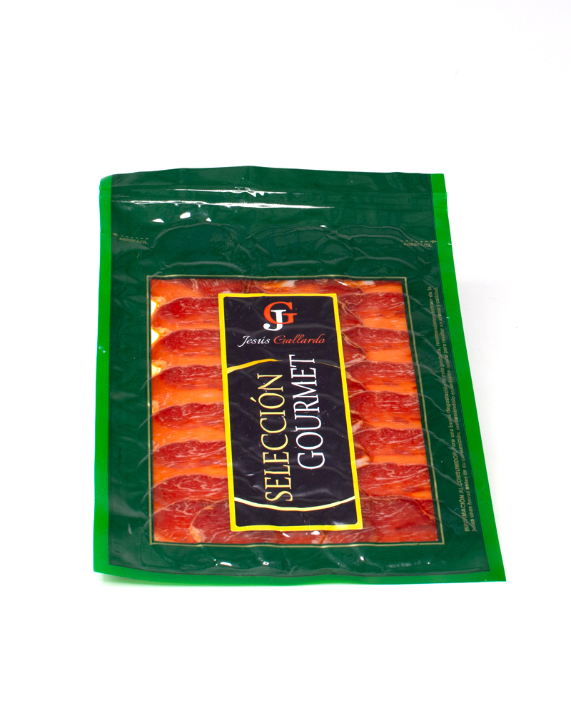 Disfruta de la suavidad y sabor excepcional de nuestro lomo cebo selección 50% ibérico, elaborado con los mejores cortes de cerdo ibérico alimentado con una dieta equilibrada basada en cereales. Este lomo destaca por su sabor suave, con notas delicadas y una textura jugosa que se derrite en el paladar. Presentado en finas lonchas de 100 gramos, es ideal para degustar en tapas, bocadillos o como parte de una selección de embutidos. Un producto de calidad, ideal para los amantes de la charcutería ibérica.